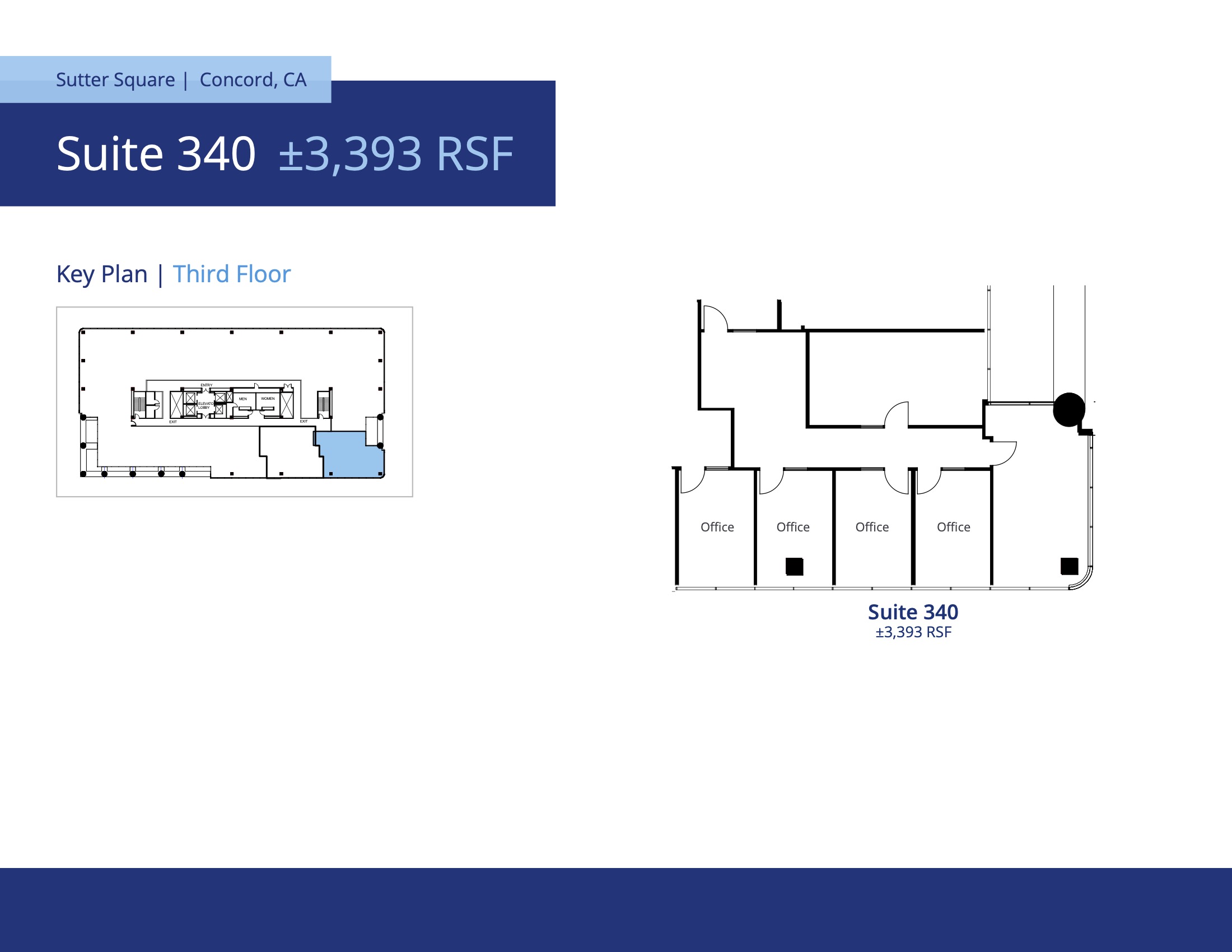 Sutter Square is a Class A development in downtown Concord, one of California’s highest profile business communities. It is located 3 blocks from Concord BART and Highway 242 and is also within walking distance to major retail, financial and business services.